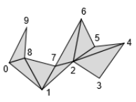위 논문 그대로 정점 [2, 3, 4], [2, 4, 5], [2, 5, 6], [2, 6, 7], [8, 9, 0], [8, 0, 1], [1, 2, 7] 순서대로 삼각화하는 코드다.
