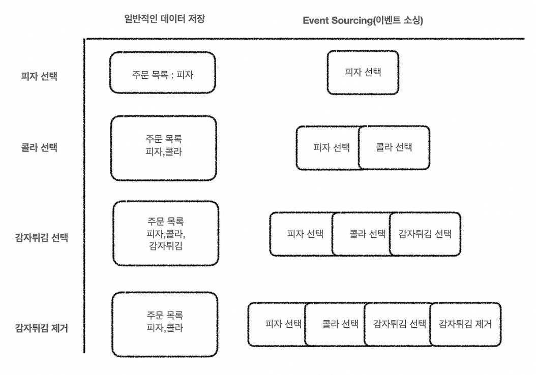 따라서 이벤트의 순서를 지키는 것만으로도 시스템의 상태 변화 과정을 완벽히 재구성할 수 있습니다.