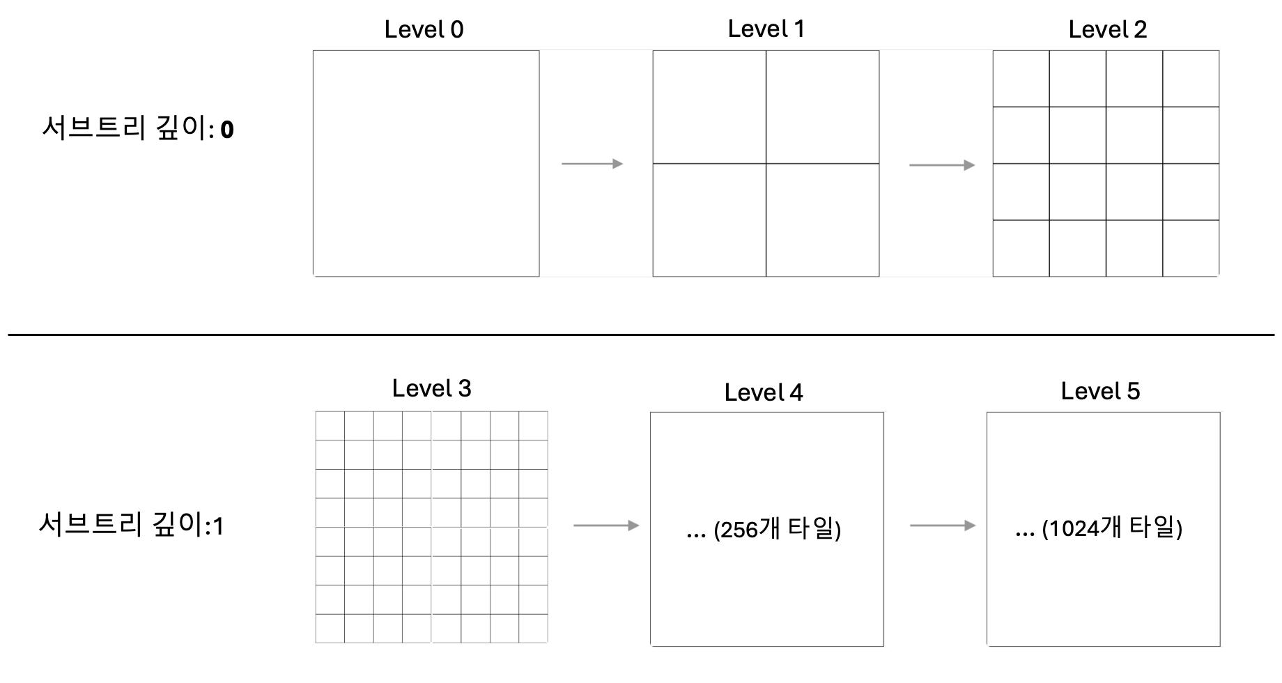 - 서브트리란? 일정 레벨 깊이(N)를 루트로 하는 하위 타일 트리 단위