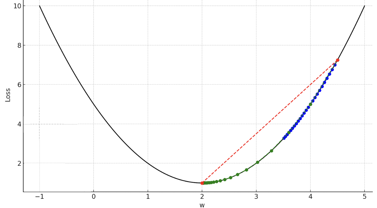 - 시간이 걸리더라도 결국 손실이 가장 작은 지점에 도달 가능